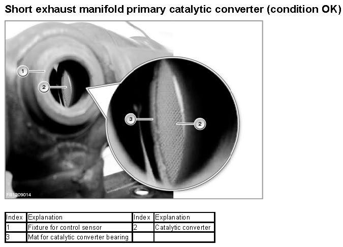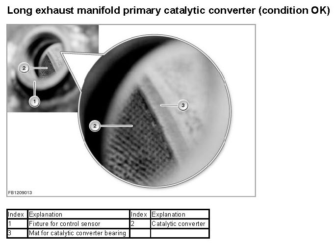 The graphics below show the configuration of the primary catalytic converters in perfect condition.