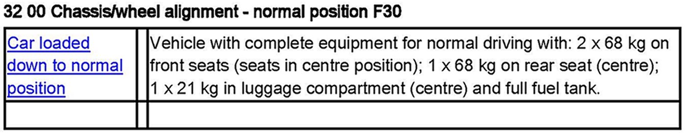 32 00 Chassis / Wheel alignment - normal postion F30