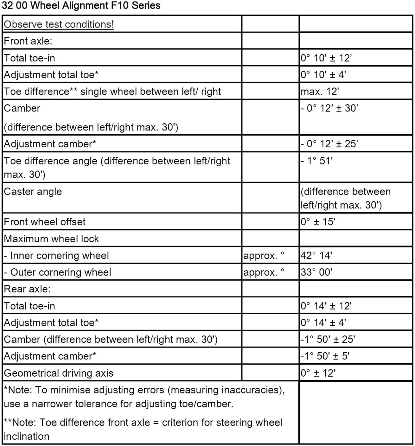 32 00 Wheel Alignment F10 Series