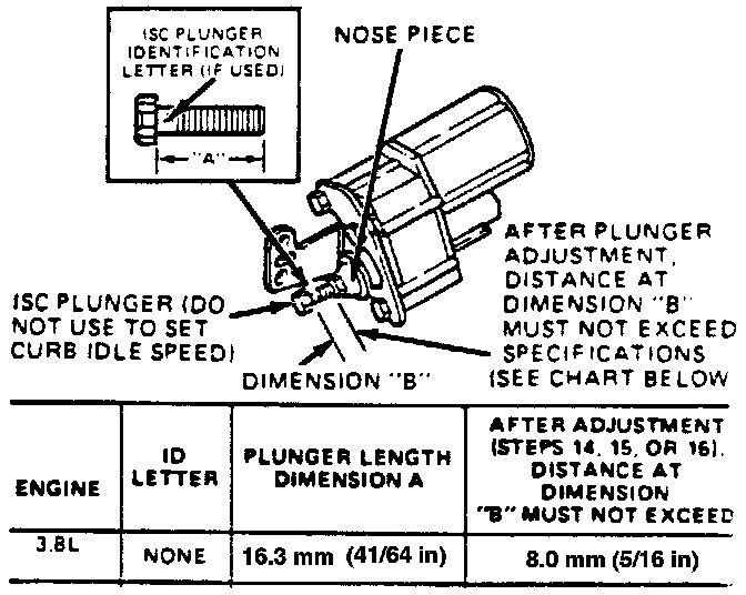 Prior to adjustment, check for identification letter on the ISC adjustment plunger. Adjust plunger, if required, to Dimension "B".