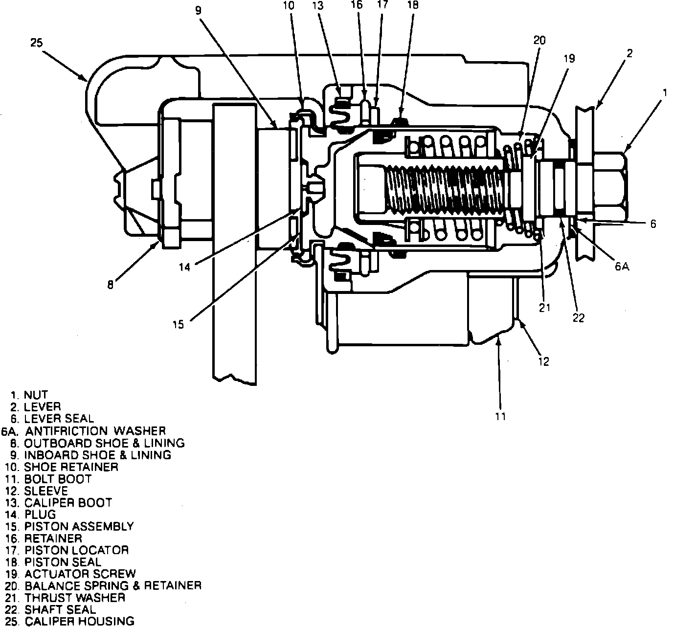 Fig. 1 Cross-sectional View Of Typical Delco-Moraine Rear Disc Brake: