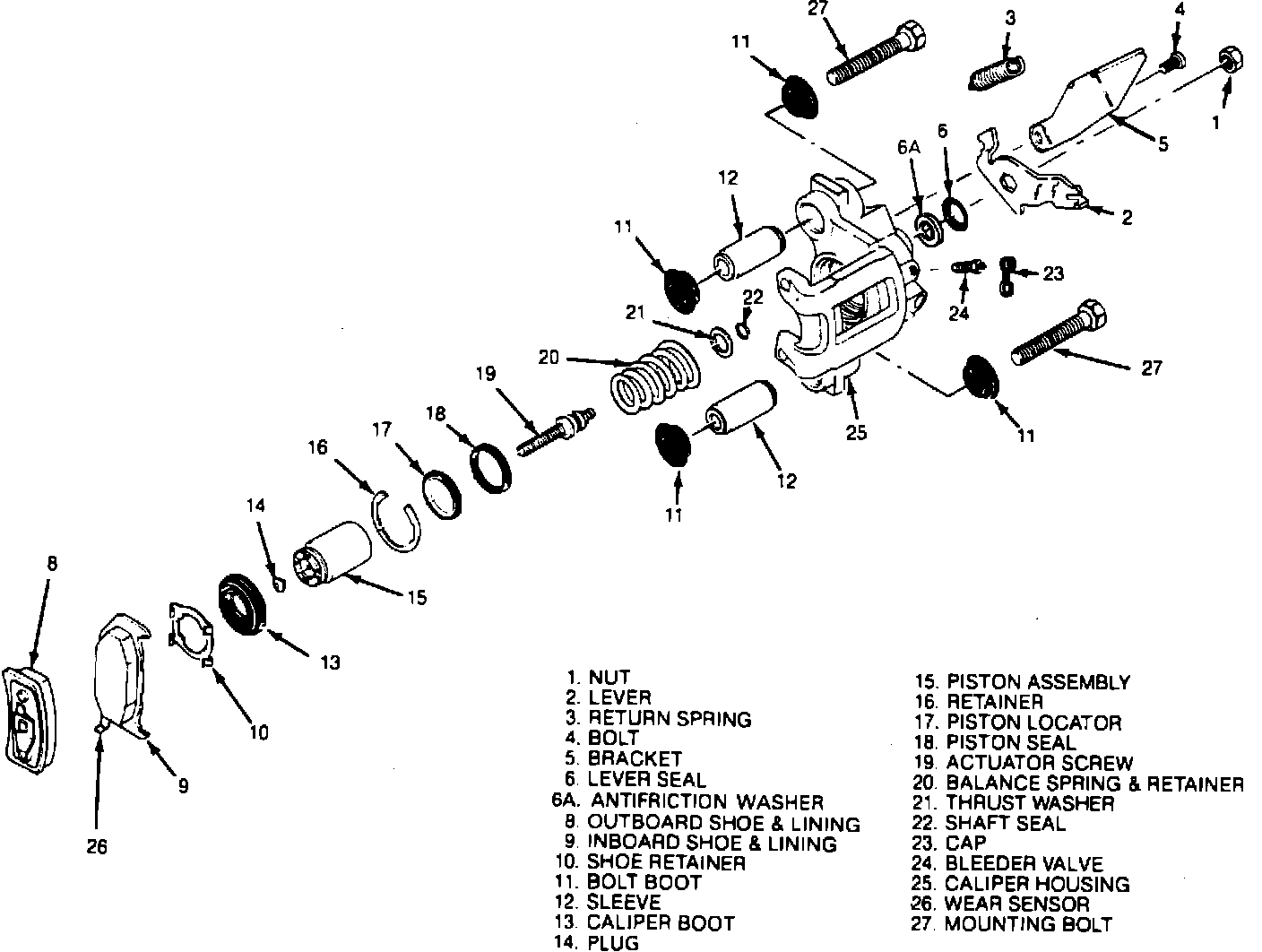Fig. 2 Rear Disc Brake Caliper Exploded View (Typical):