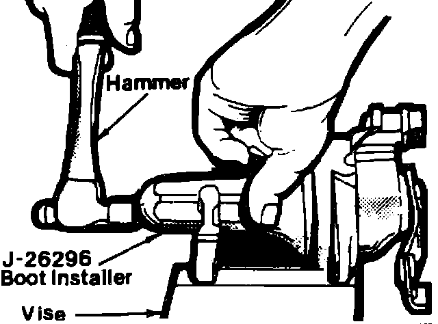 11. With dust boot installer tool No. J-26296 or equivalent, drive boot until seal bottoms in caliper housing, Fig. 6.