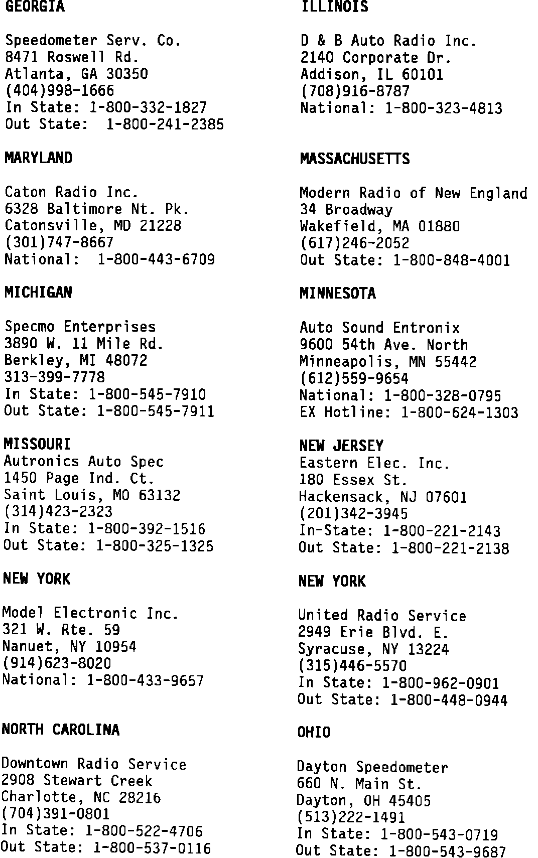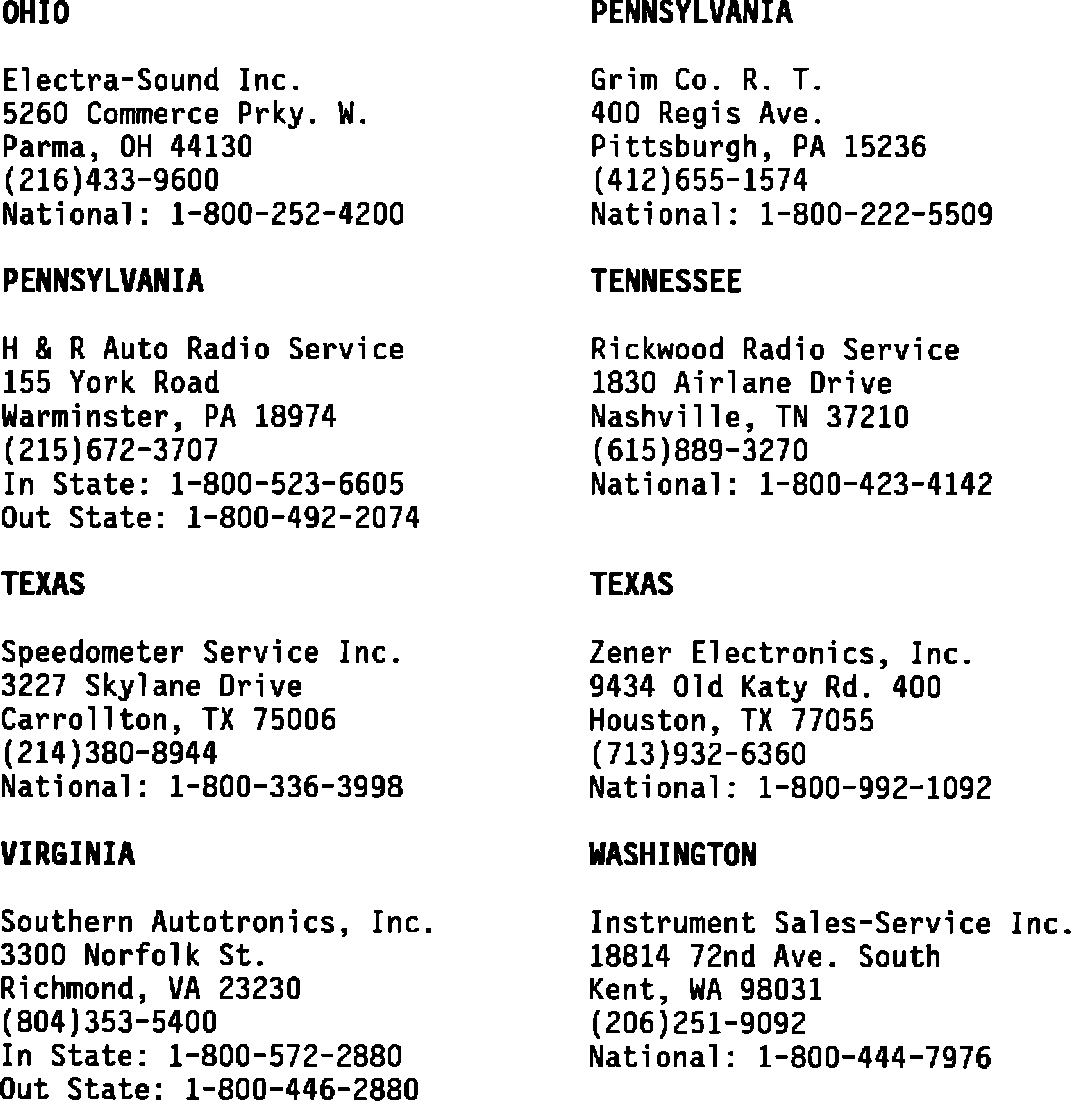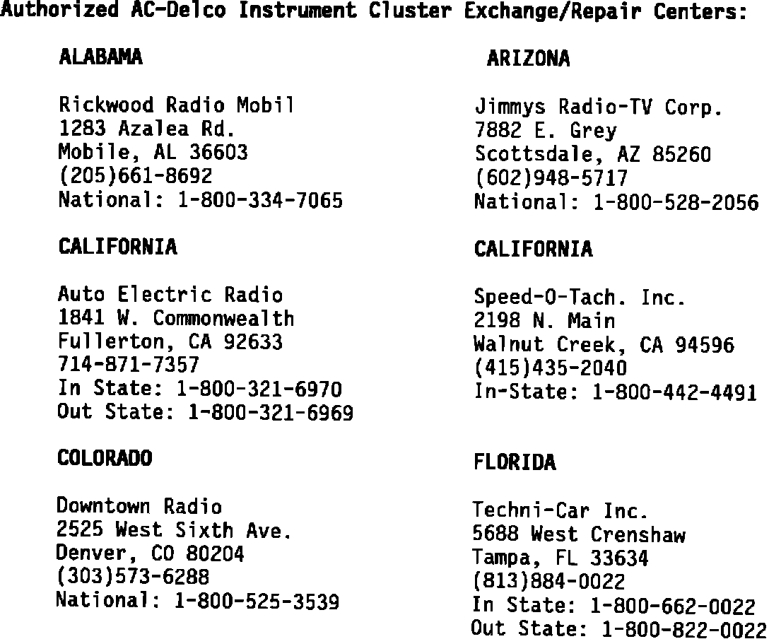 Authorized AC-Delco Instrument Cluster Exchange/Repair Centers