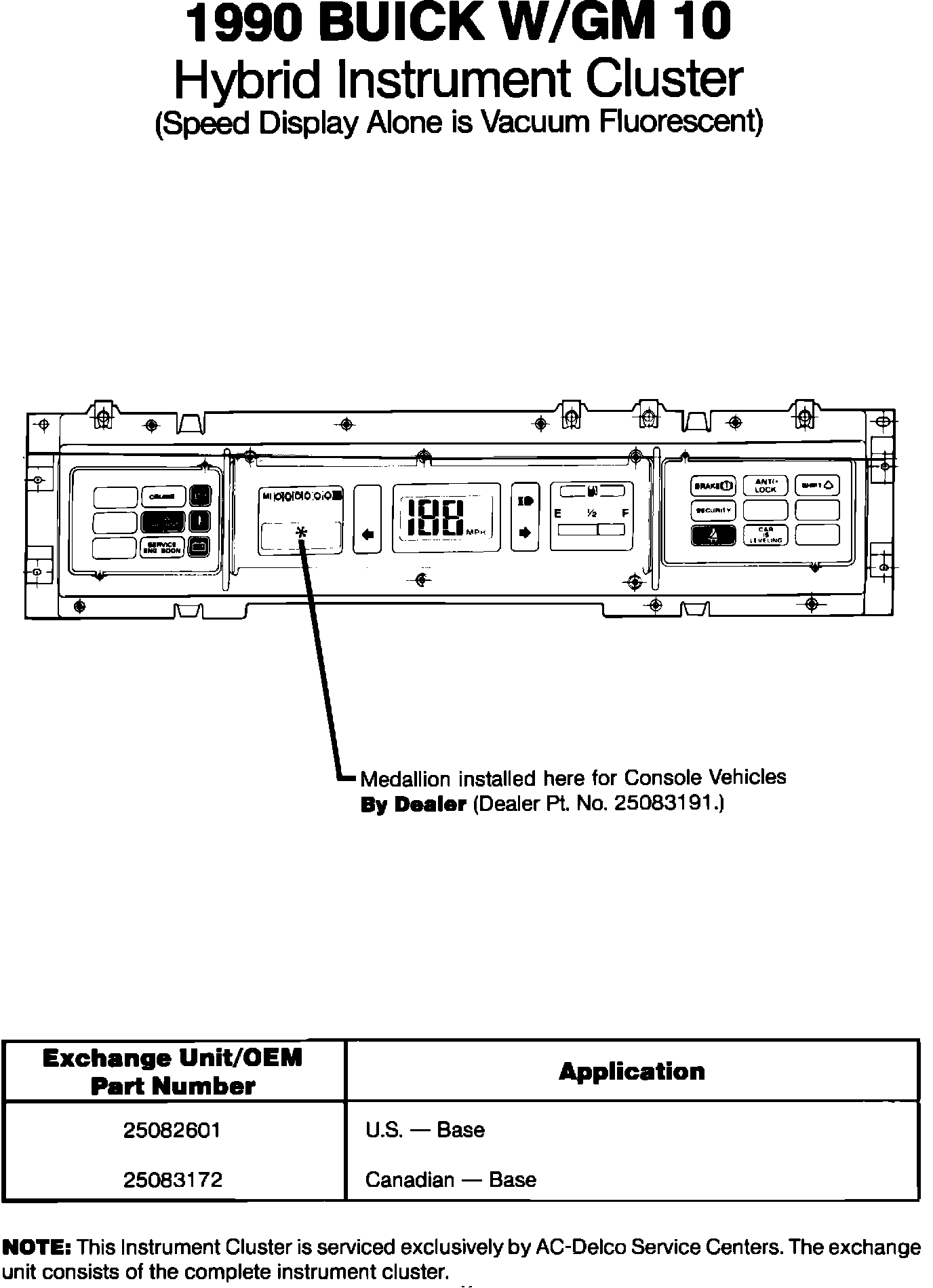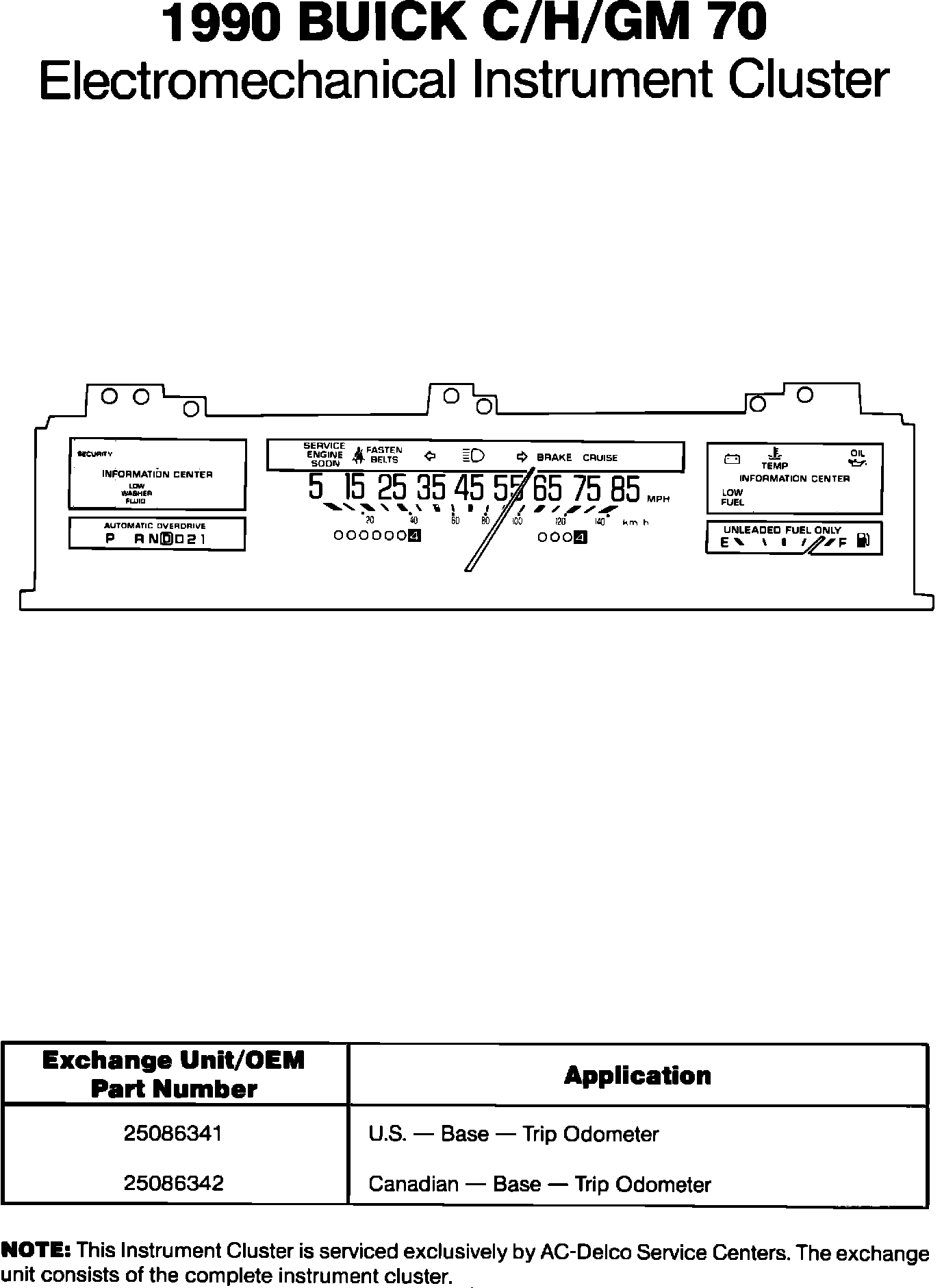 Exchange units are obtained by telephoning one of the authorized AC Delco Service centers listed in this bulletin. If your local center does not have a unit available for pre-exchange, call other centers listed. All centers are authorized to ship to any Buick dealer. Units are shipped with memo billings, via next day UPS, within 24 hours of the request. The memo billings are cancelled when the inoperative instrument cluster is received by the service center from which it was obtained.