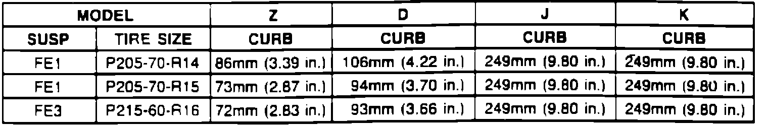 Fig. 6 Ride Height Specification Chart. 1990 Regal: