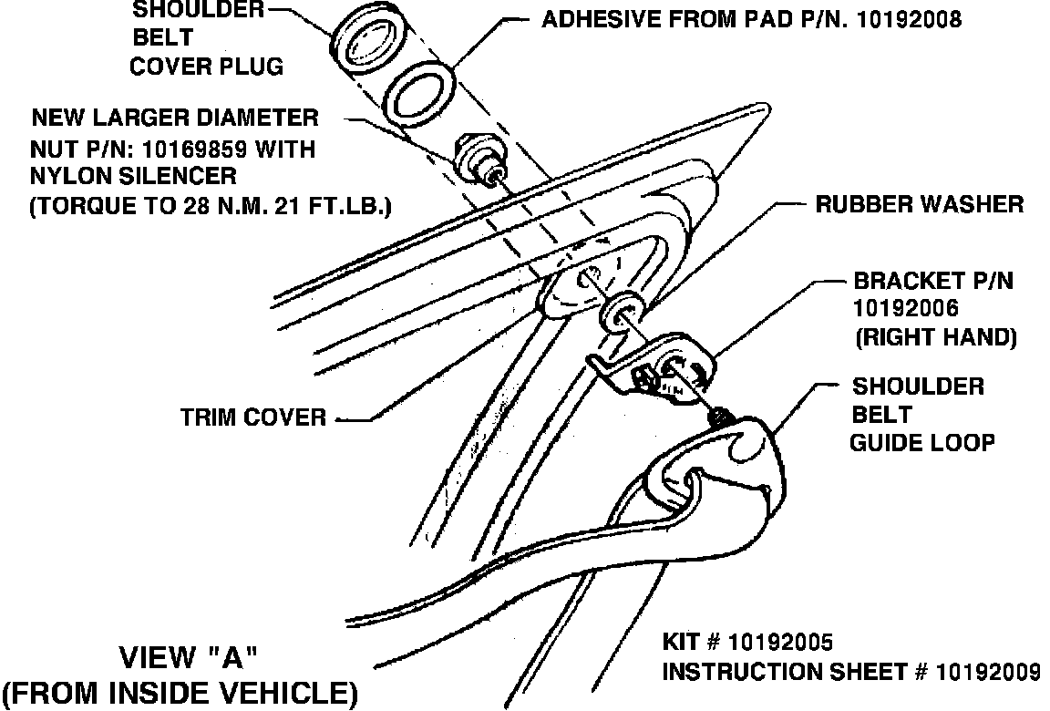 1. Lower front door window glass and remove (pry off) plastic Shoulder belt plug cover working from the outside of vehicle (Fig. 2, View "A").