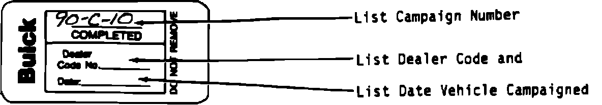 Each vehicle corrected in accordance with the instructions outlined in this bulletin will require a "Campaign Identification Label". Each label provides a space to include the five (5) digit dealer code of the dealer performing the campaign service. This information may be inserted with a typewriter or a ball point pen.