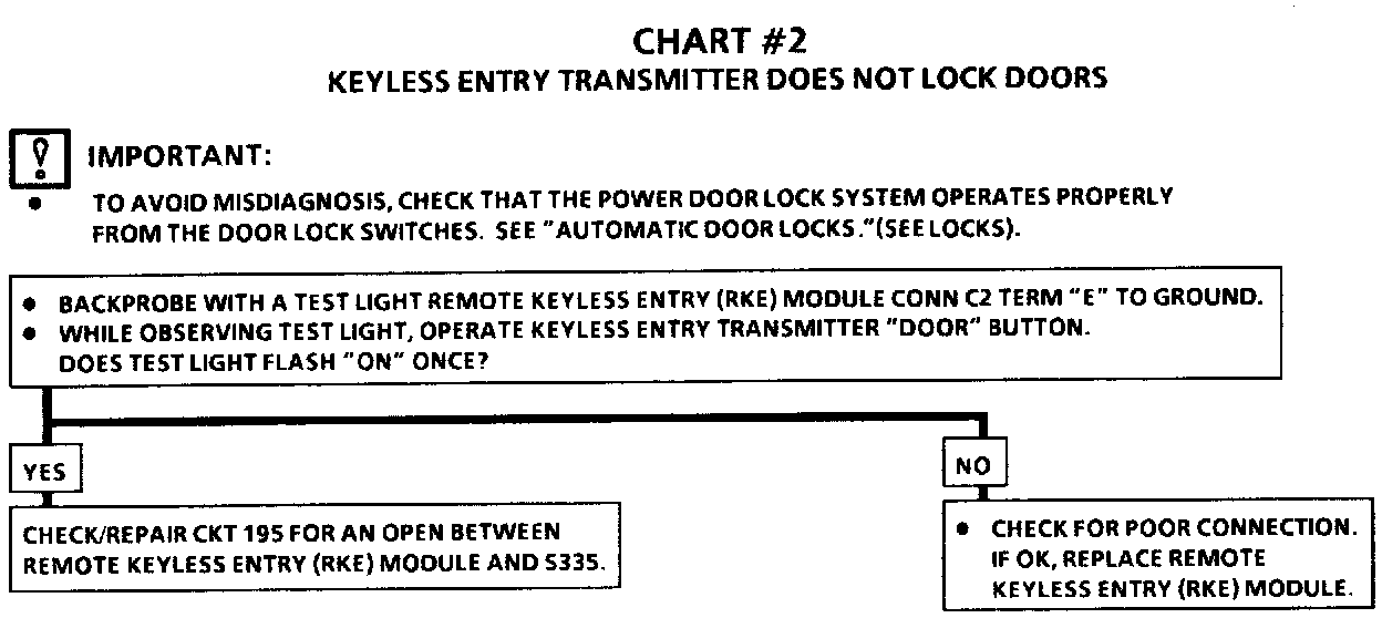 Chart #2 Keyless Entry Transmitter Does Not Lock Doors: