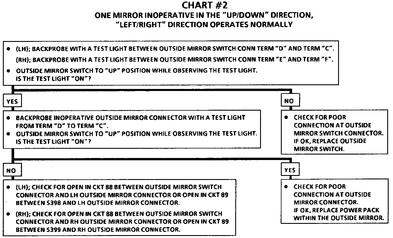 Chart #2 One Mirror Inoperative In The Up/Down Direction, Left/Right Direction Operates Normally: