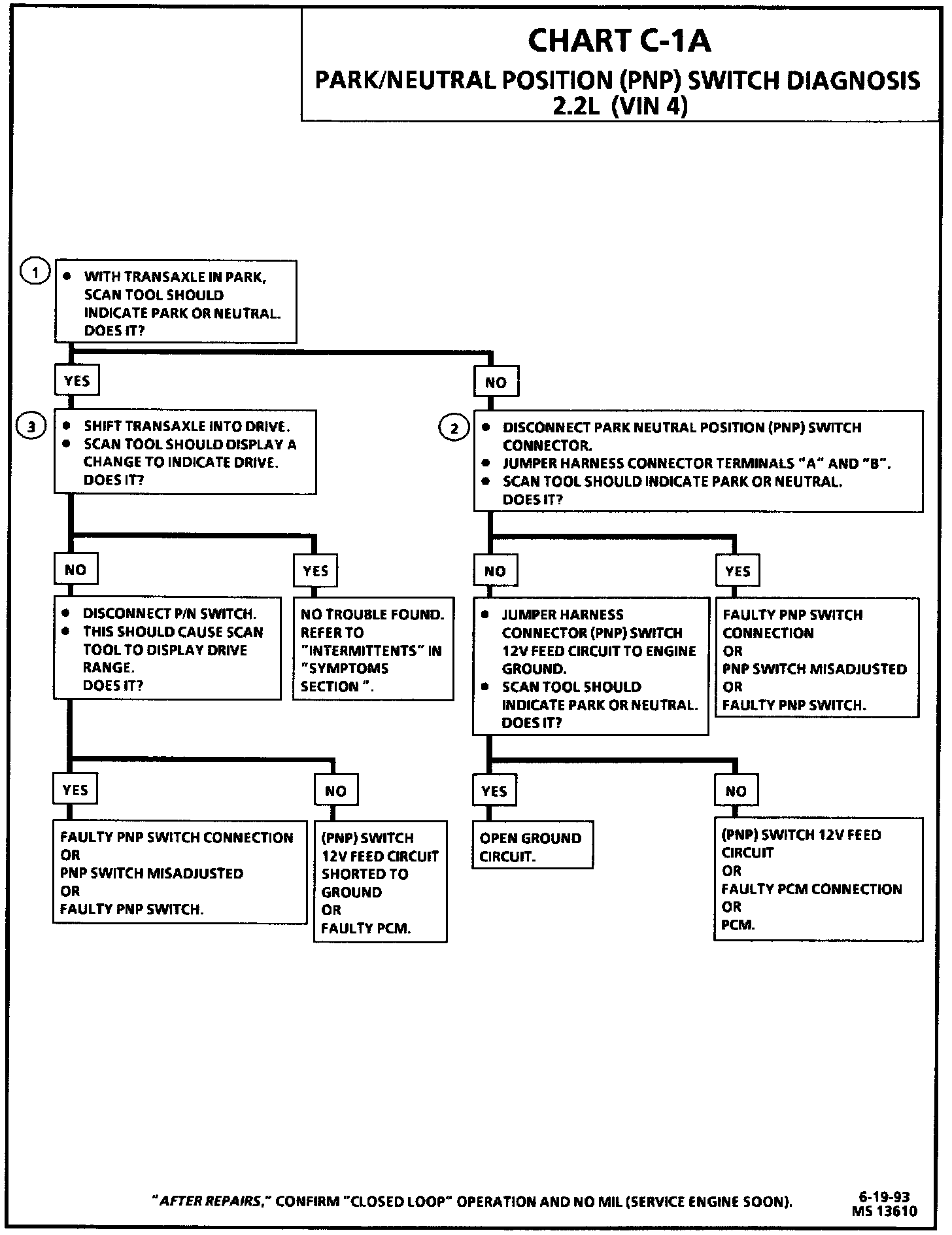 Chart C-1A - Park/Neutral Position Switch Diagnosis: