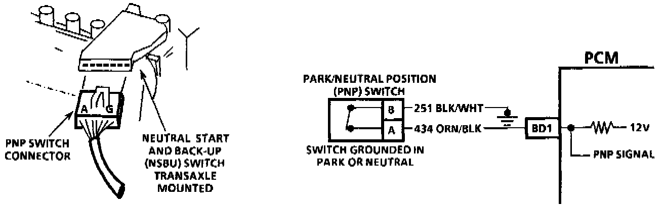 The Park/Neutral Position (PNP) switch contacts are a part of the neutral start/back up switch and are closed in park or neutral, and open in drive/reverse ranges.