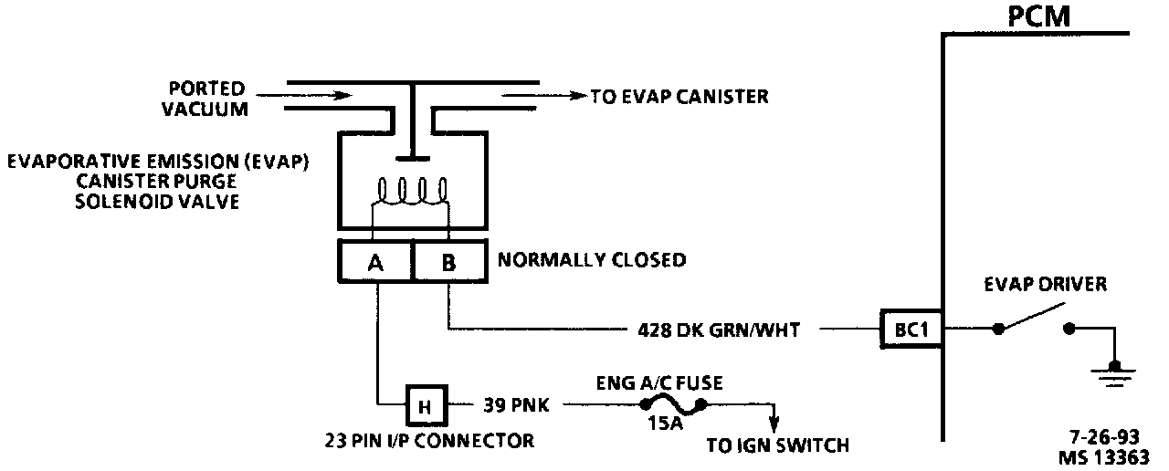 EVAP Canister Purge Solenoid Wiring Circuit: