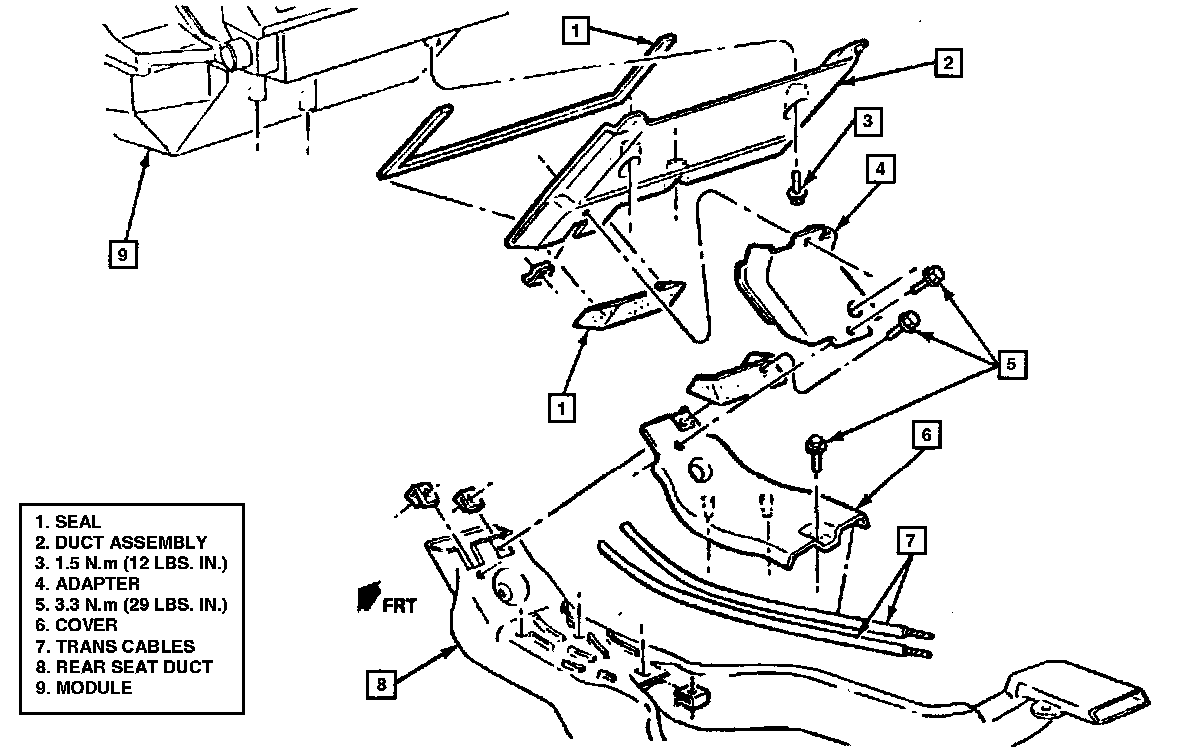 9. Remove rear seat duct adapter, then the heater floor duct, Fig.4.