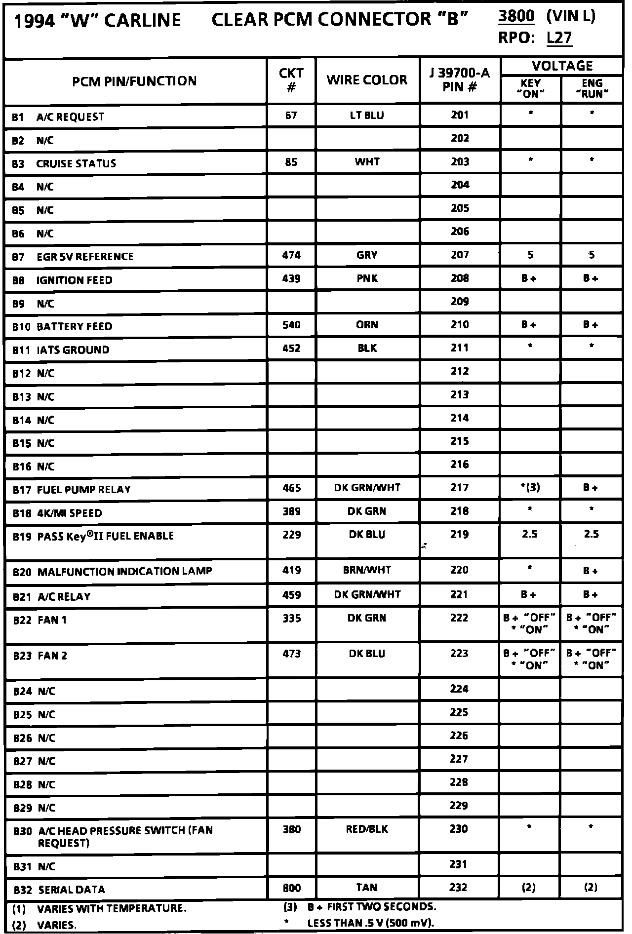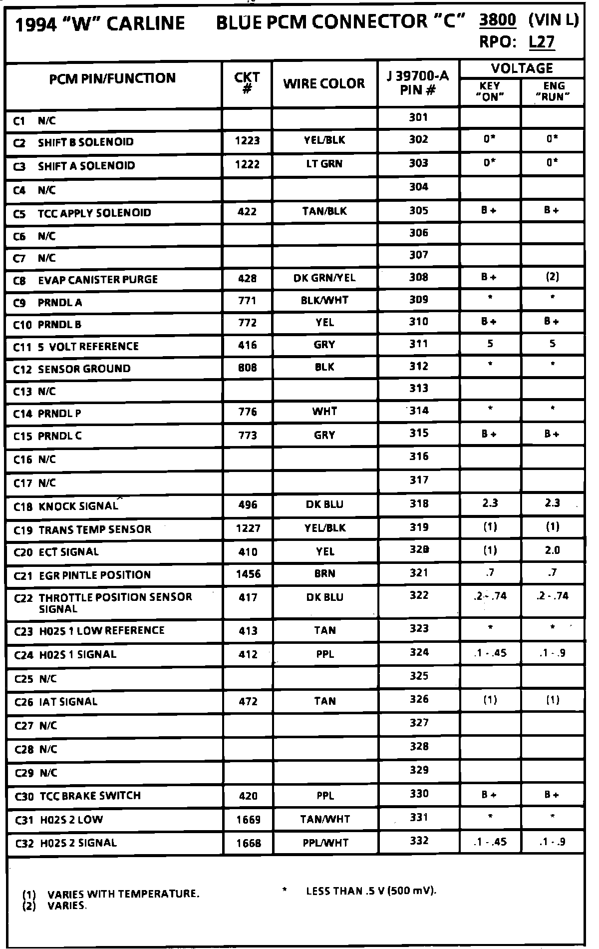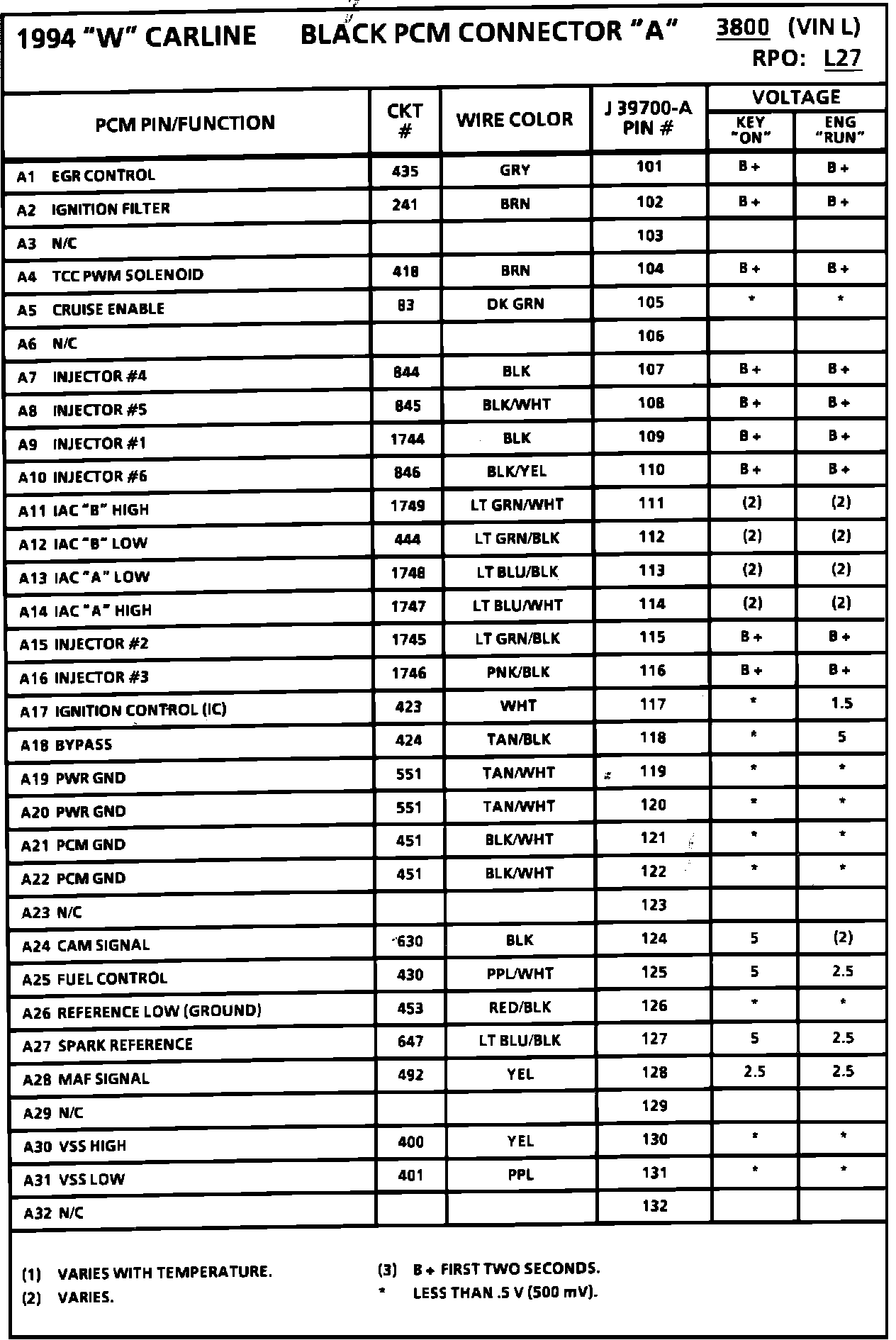 PCM Connector ID And Terminal/Voltage Reference Chart (1 Of 3):