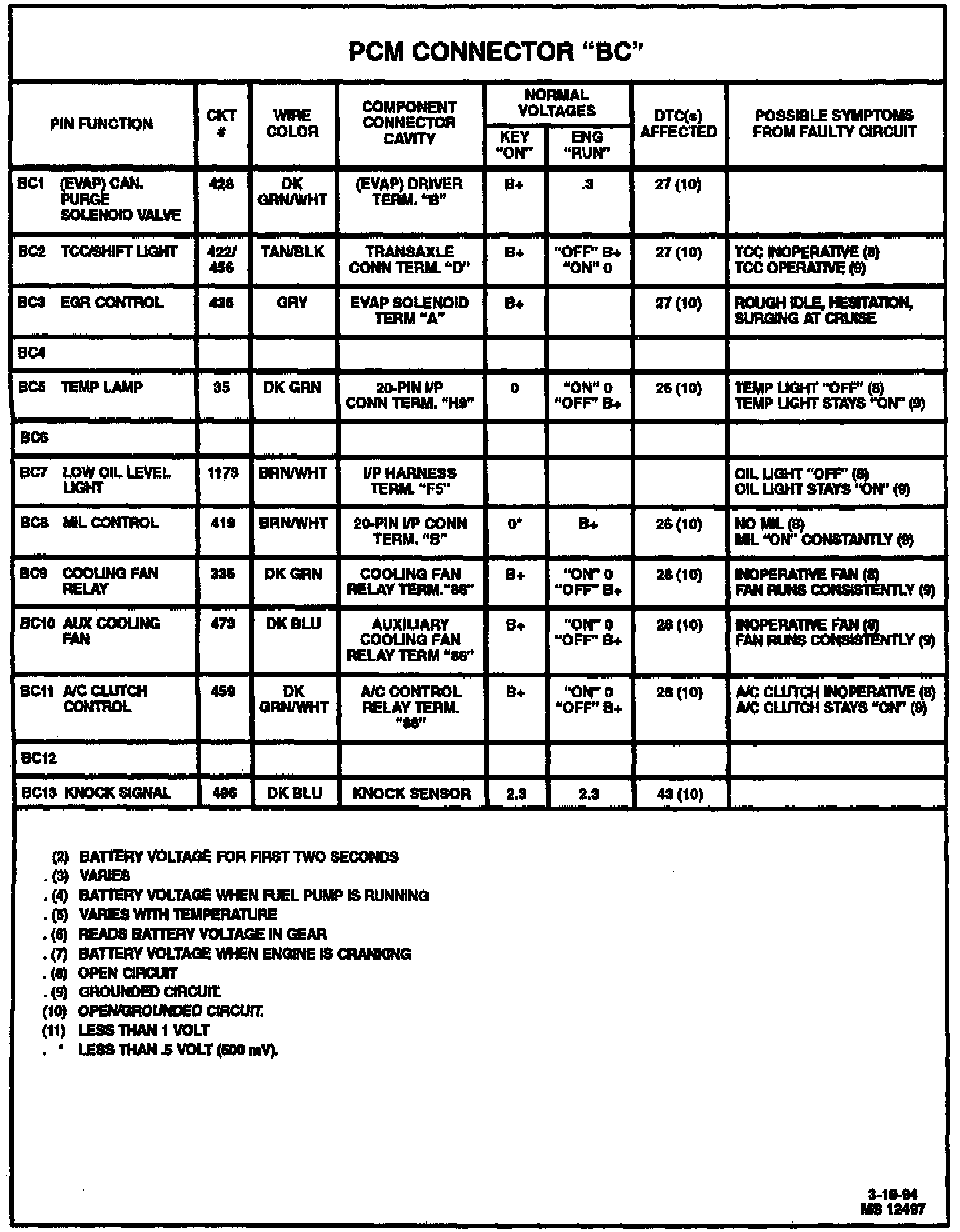 PCM Symptom Chart (Blue C1- C13):
