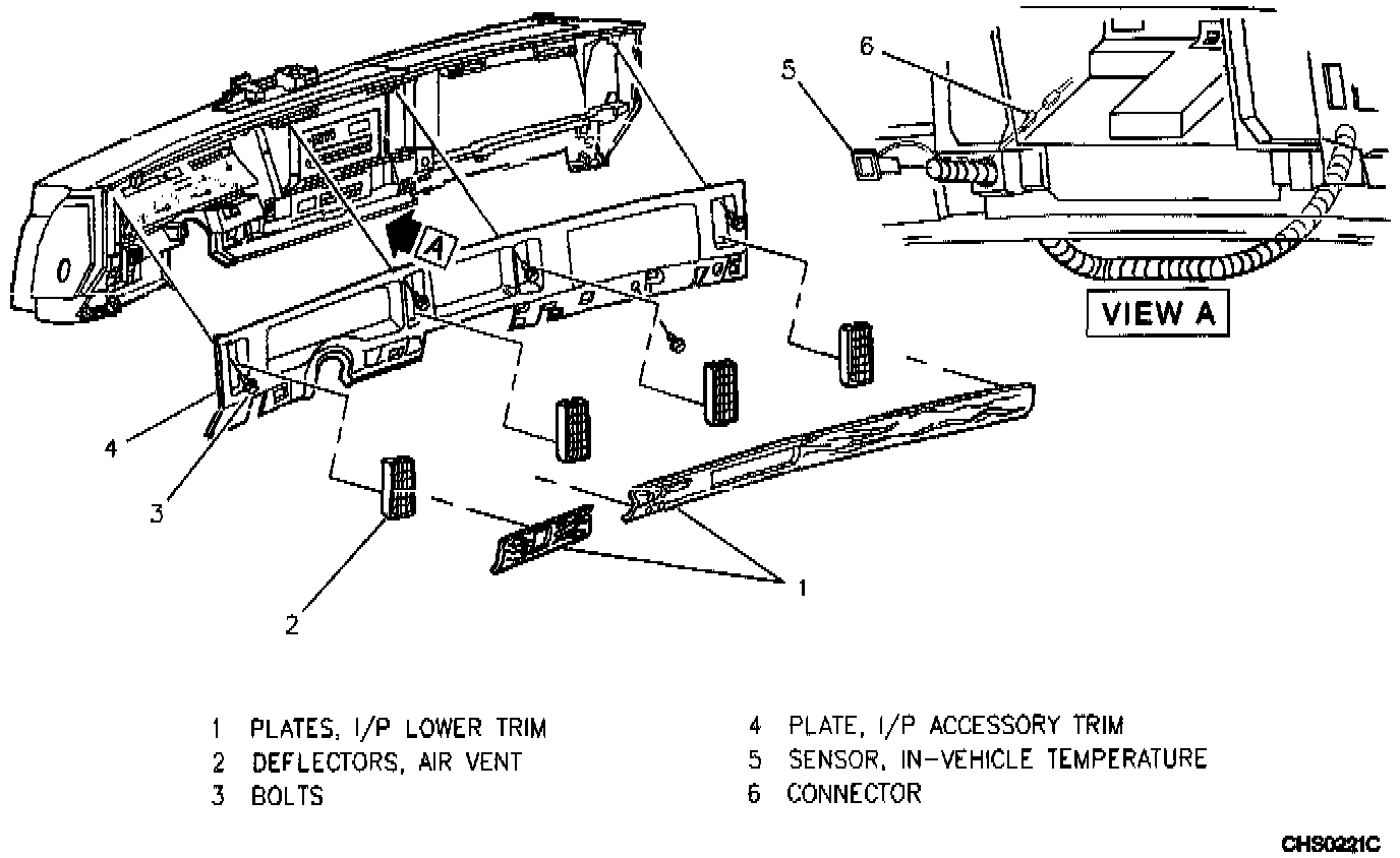 1. Instrument Panel (I/P) lower trim plates (snap out).