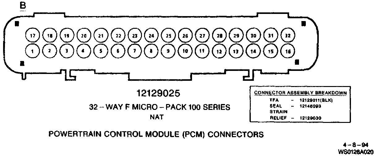 B: Powertrain Control Module (PCM) Connectors: