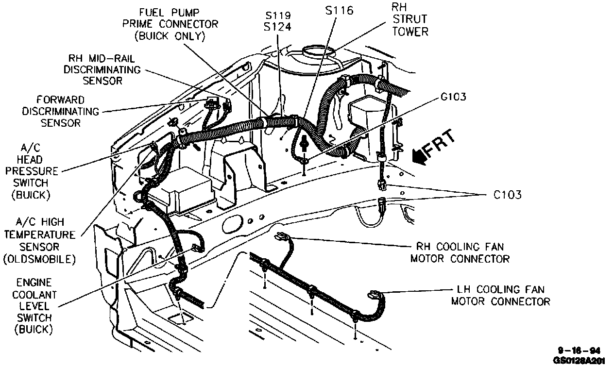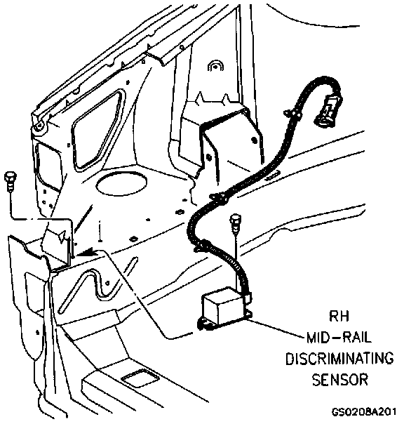 Front Of Engine Compartment, RH Side, RH Mid-Rail Discriminating Sensor:
