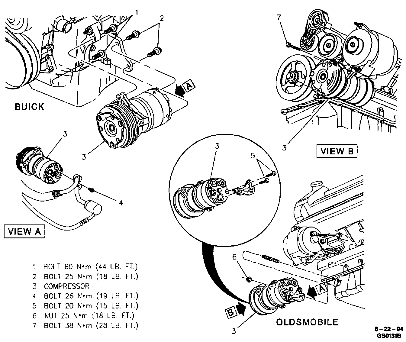 5. Bolts from compressor and engine block. (Leaving bracket attached to compressor).