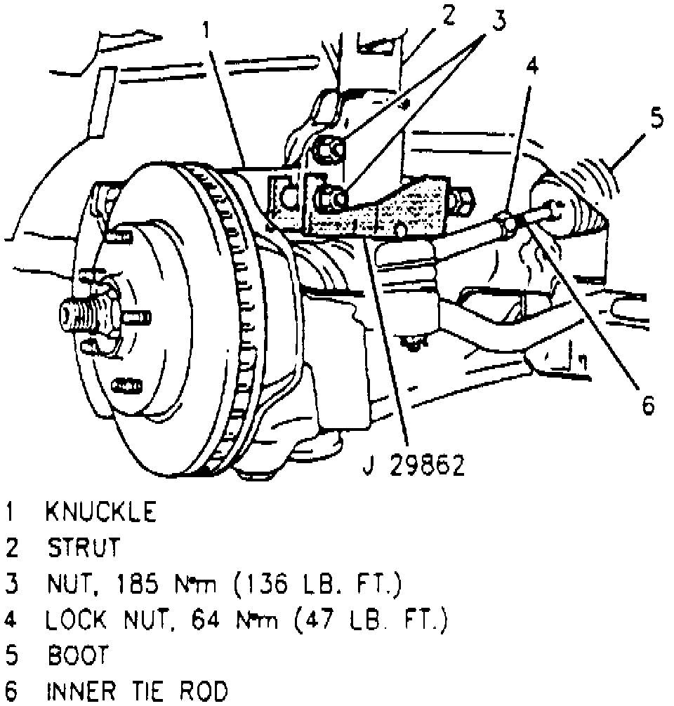 2. Torque strut to steering knuckle bolts to 136 ft. lbs.