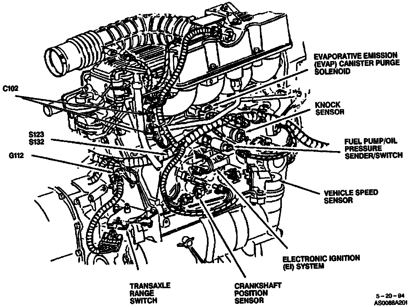 The Vehicle Speed Sensor (VSS) is located in the lower rear of engine compartment, on transaxle.