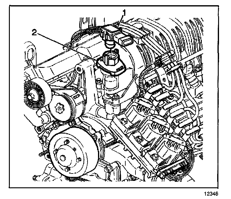 2. Carefully bend the locking tabs holding the MAP (1) sensor to the PCV valve cover (2) just enough to remove the MAP sensor.