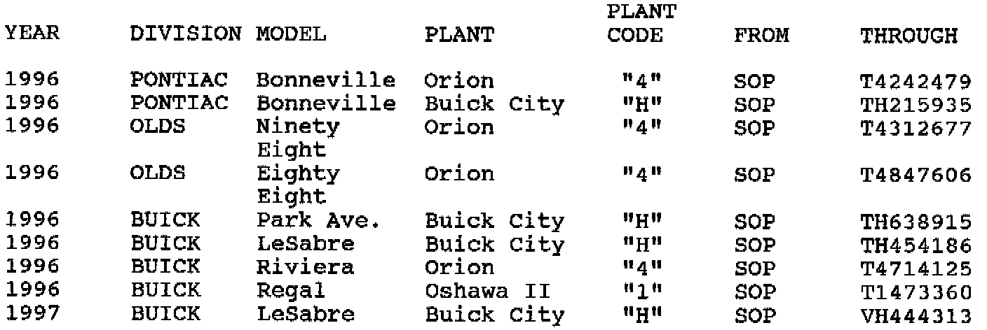 Involved are certain 1996 Pontiac Bonneville; Oldsmobile Ninety Eight and Eighty Eight; Buick Park Avenue, LeSabre, Riviera and Regal and 1997 Buick LeSabre model vehicles equipped with a 3.8L engine (RPO L36, VIN K) and built within the VIN breakpoints as shown.