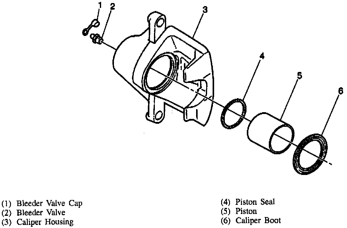 2. Piston, using compressed air into the caliper inlet hole. Piston will come out through piston boot.