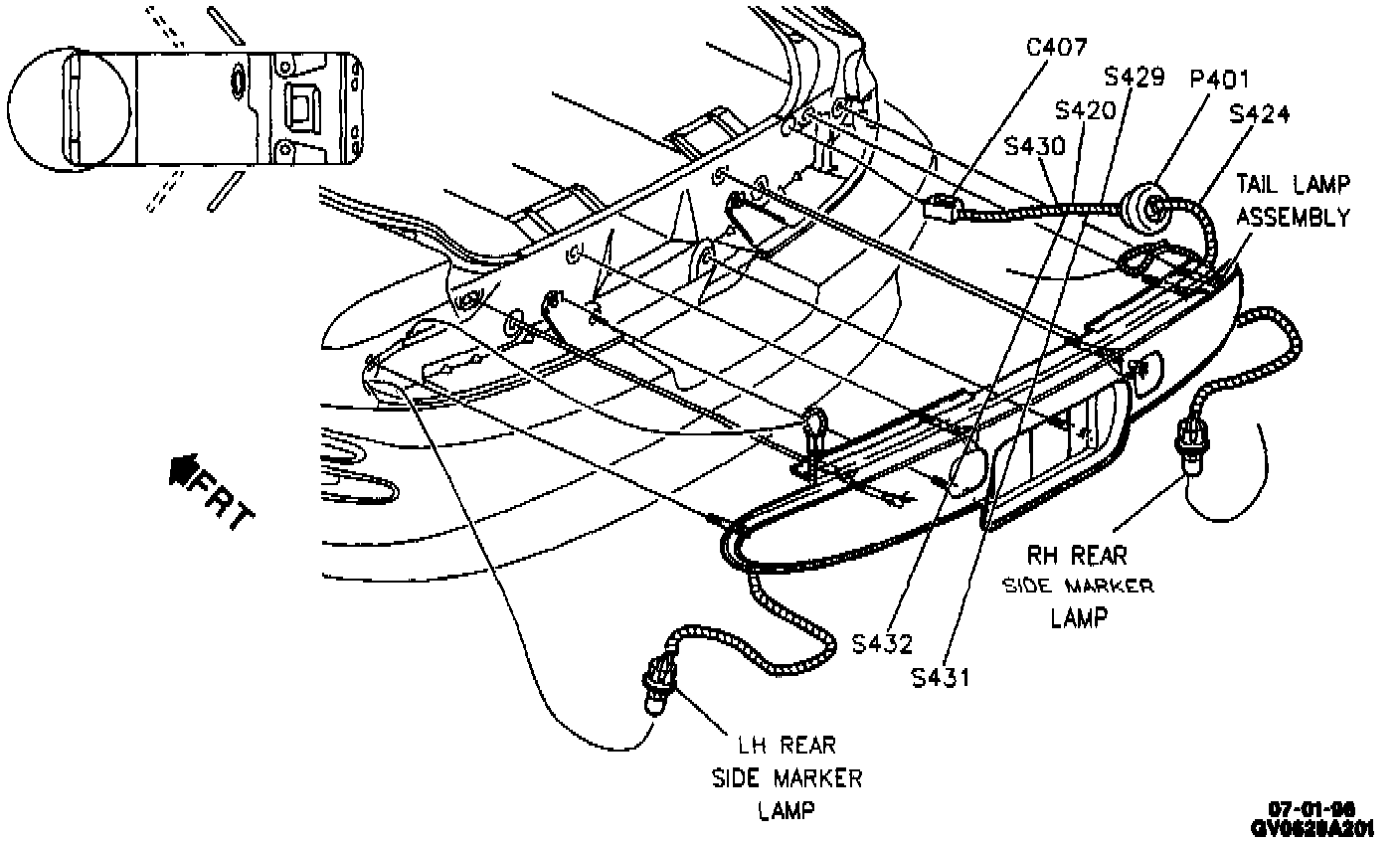 Outside Rear End Panel, Behind Taillamp Assembly: