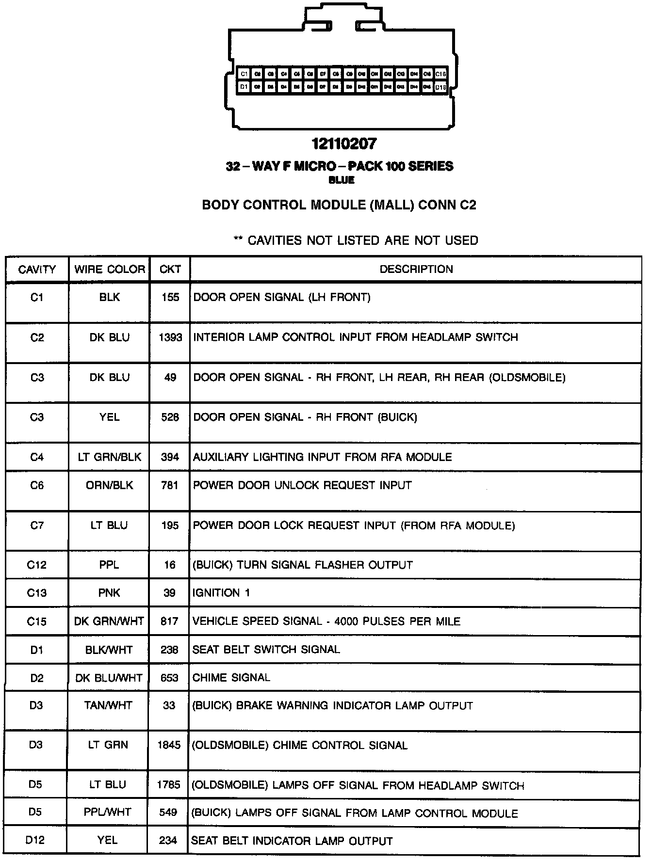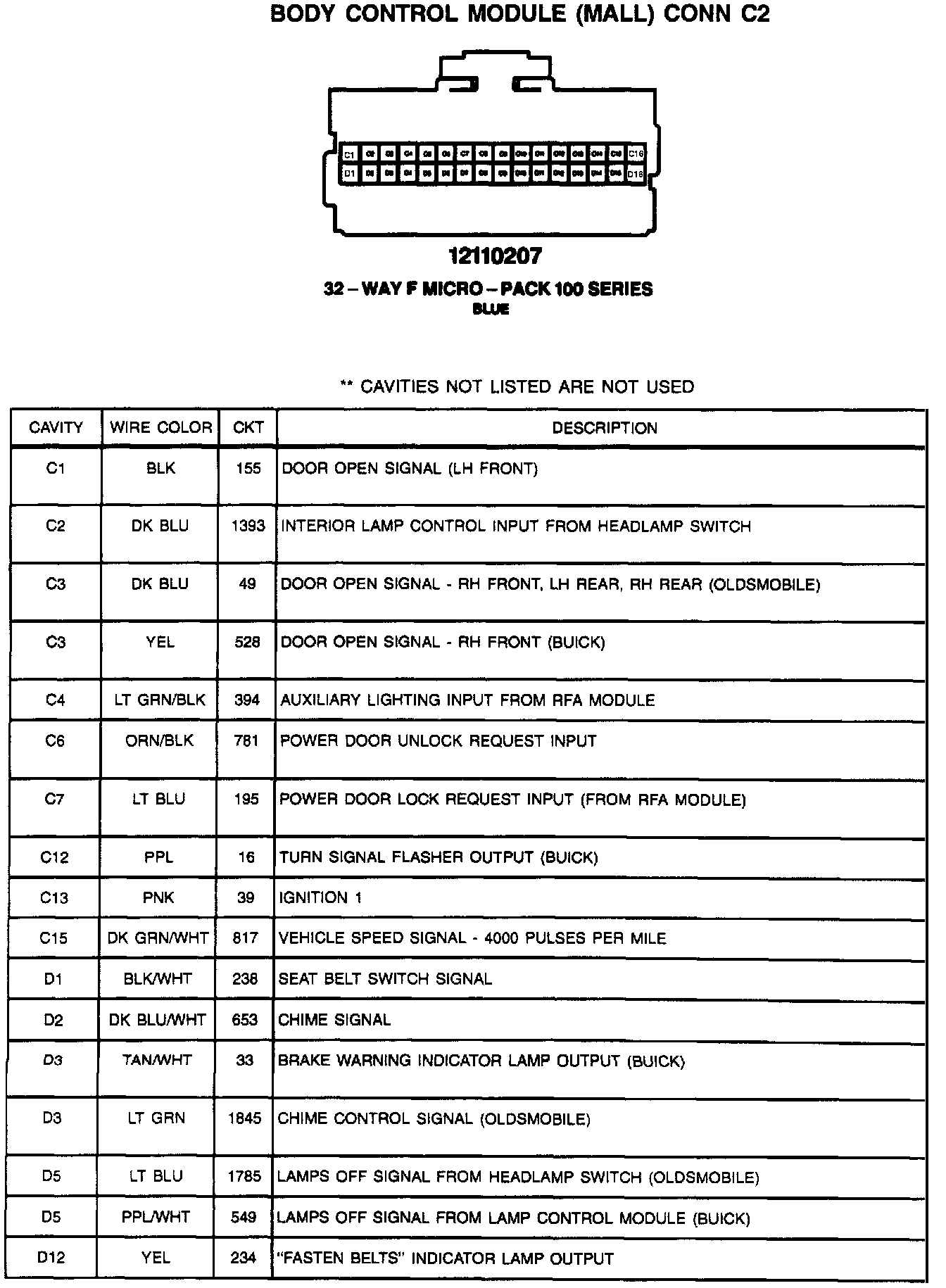 Body Control Module (MALL) CONN C2: