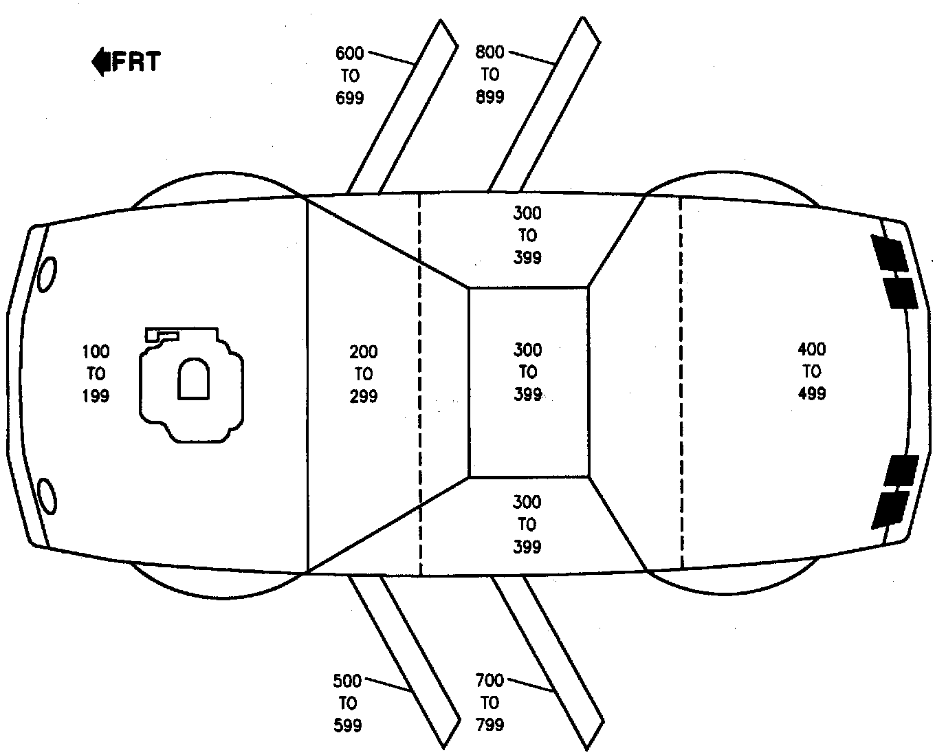 All grounds, in-line connectors, pass-through grommets and splices are given identifying numbers according to where they are located in the vehicle. The above chart explain the numbering system.