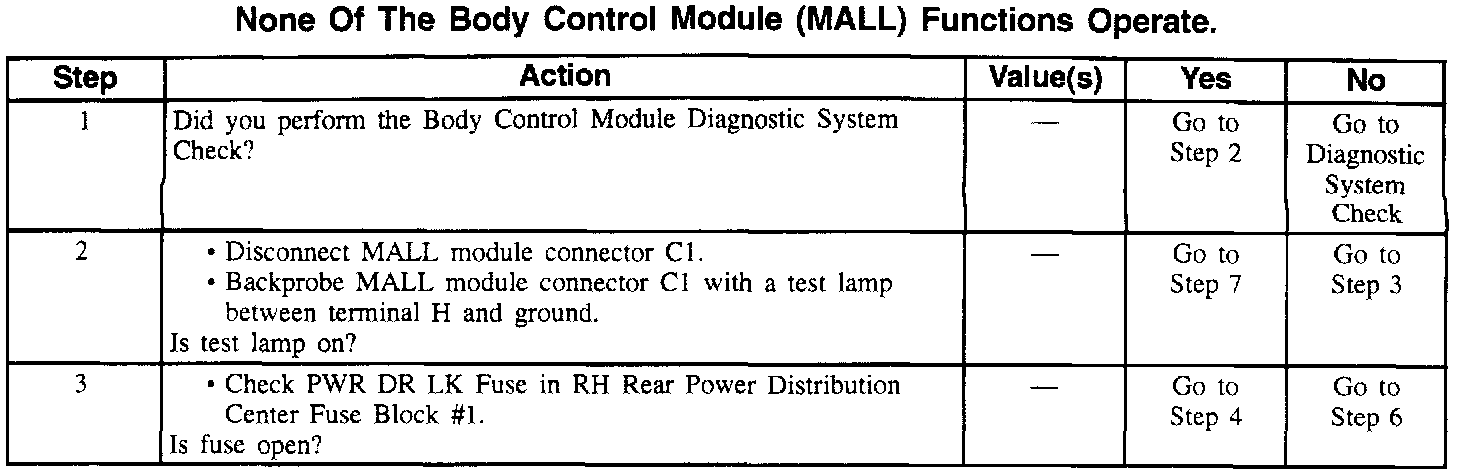 None Of The Body Control Module (MALL) Functions Operate (Part 1 Of 2):