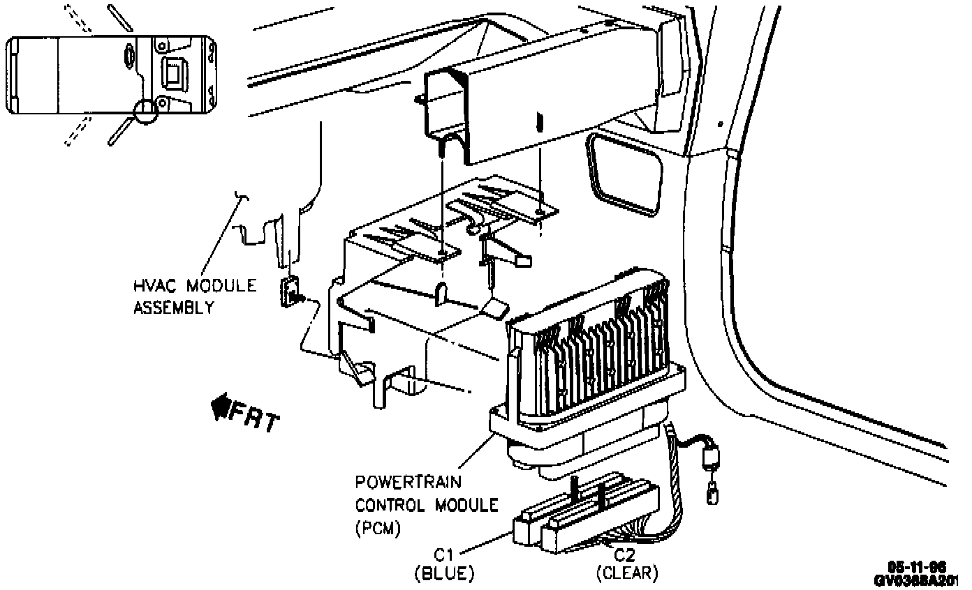 RH Front Of Passenger Compartment, Behind Instrument Panel:
