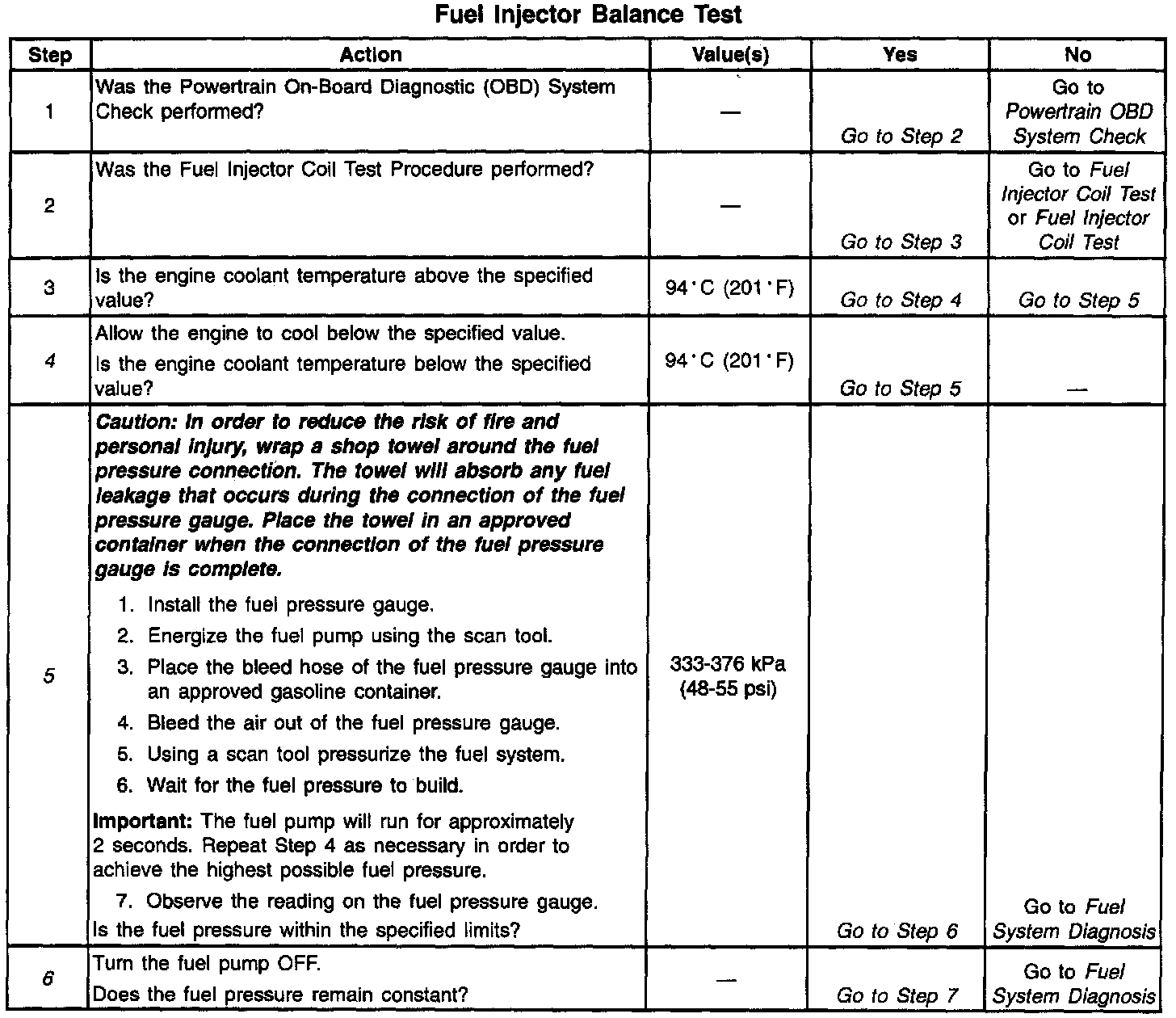 Fuel Injector Balance Test