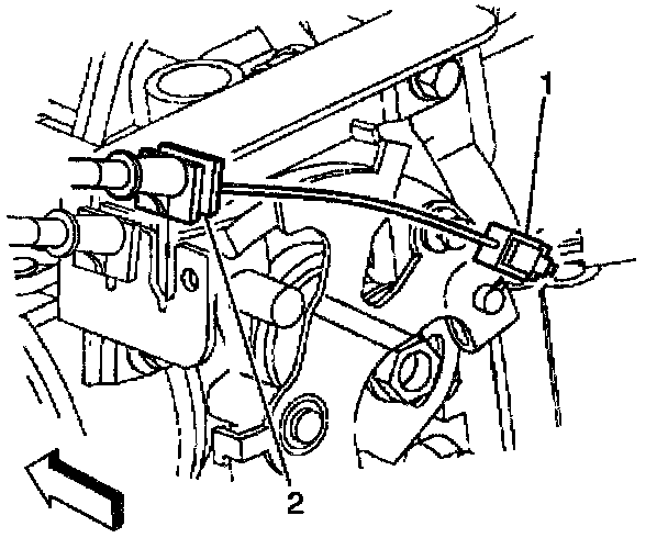 3. Snap the cable to the throttle body bracket (2).