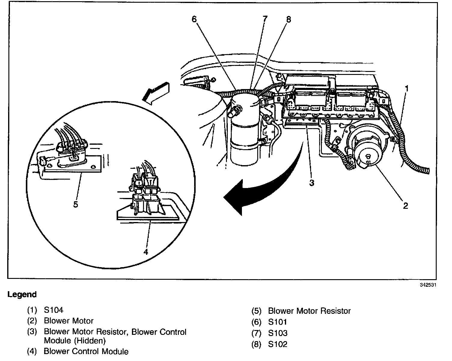 In the center rear of the engine compartment, below the right side MaxiFuse(R) block