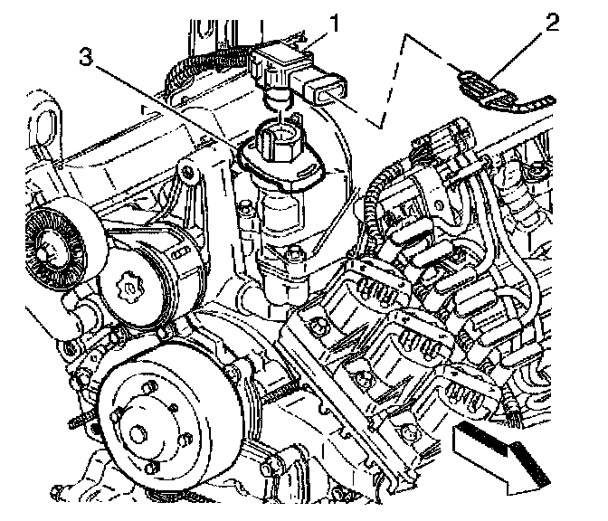 2. Position and install the MAP sensor (1) to the PCV valve cover (3). Ensure that the locking tabs engage to hold the MAP sensor to the PCV valve cover.