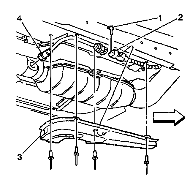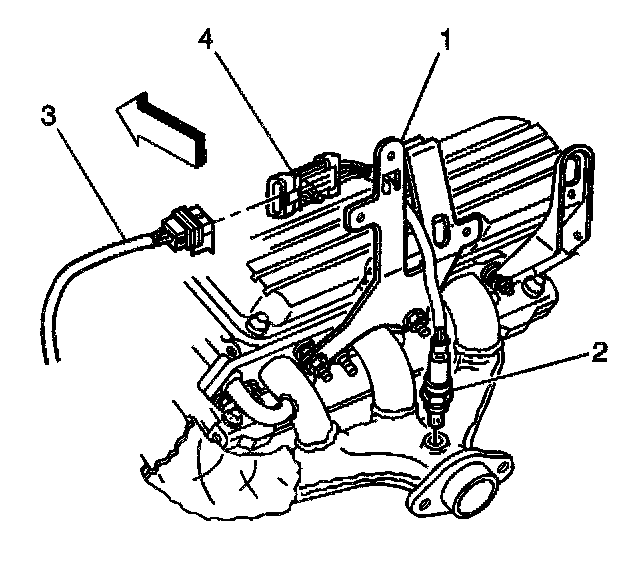 1. Remove the HO2S retaining clip (4) from the bracket (1).