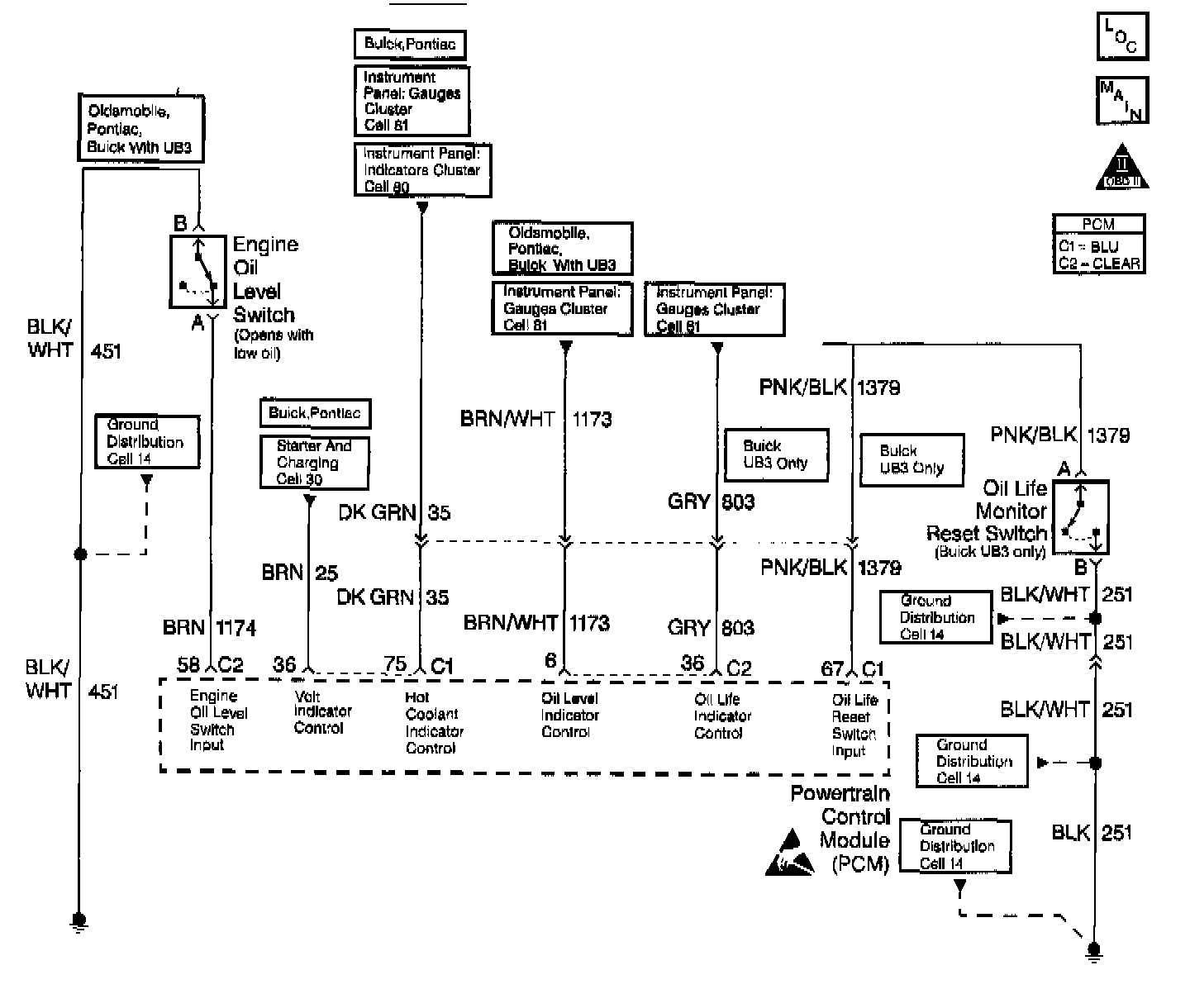 ^ Poor connection at PCM or oil level sensor. Inspect harness connectors for backed out terminals, improper mating, broken locks, improperly formed or damaged terminals, and poor terminal to wire connection.