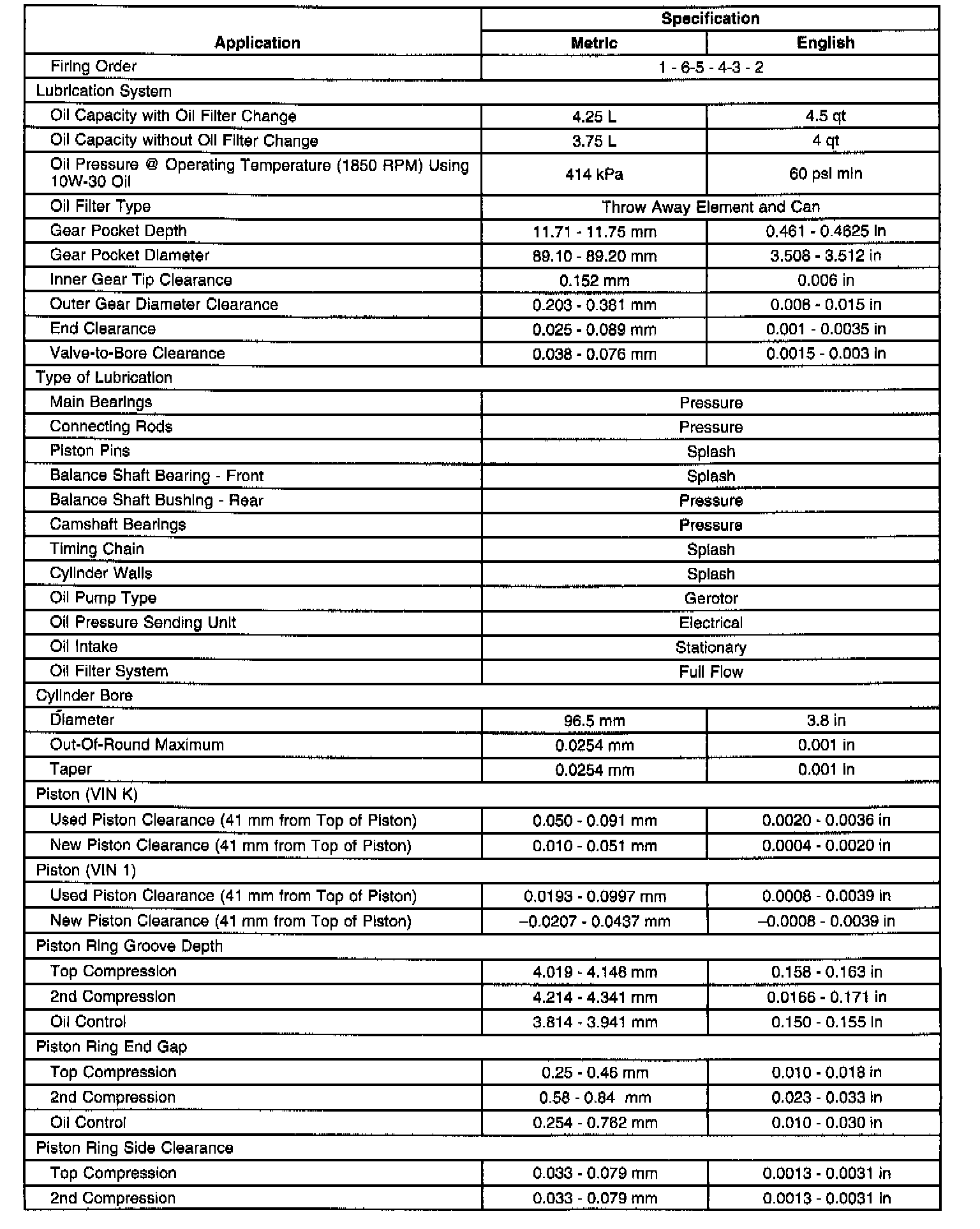 General Engine Data/Specifications