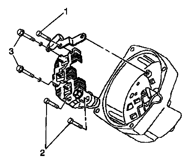 11. Install the voltage regulator, the brush holder, the dust shield, and the connector strap assembly into the slip ring end frame as one unit.