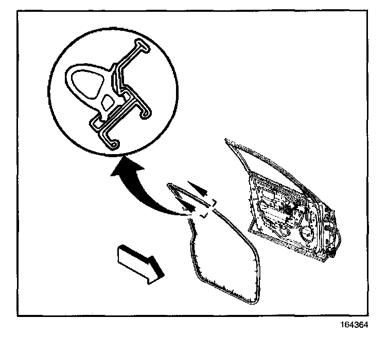 2. Press the upper half of the front door weatherstrip pushing the weatherstrip into the track.