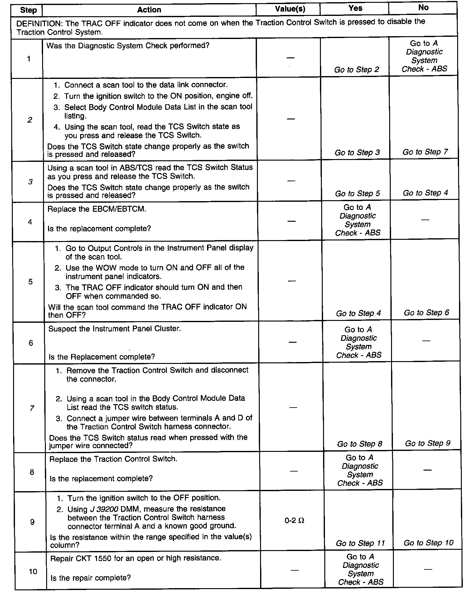 7. Checks if the Body Control Module or the Traction Control Switch is at fault.