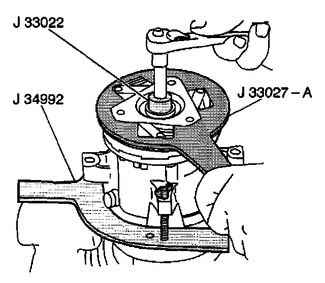 10. Tighten the hex portion of the body of the J 33013-B in order to press the hub onto the shaft.