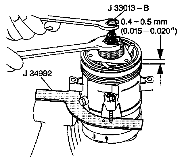 8. Back off the body of the J 33013-B in order to allow the center screw to be threaded onto the end of the compressor shaft.