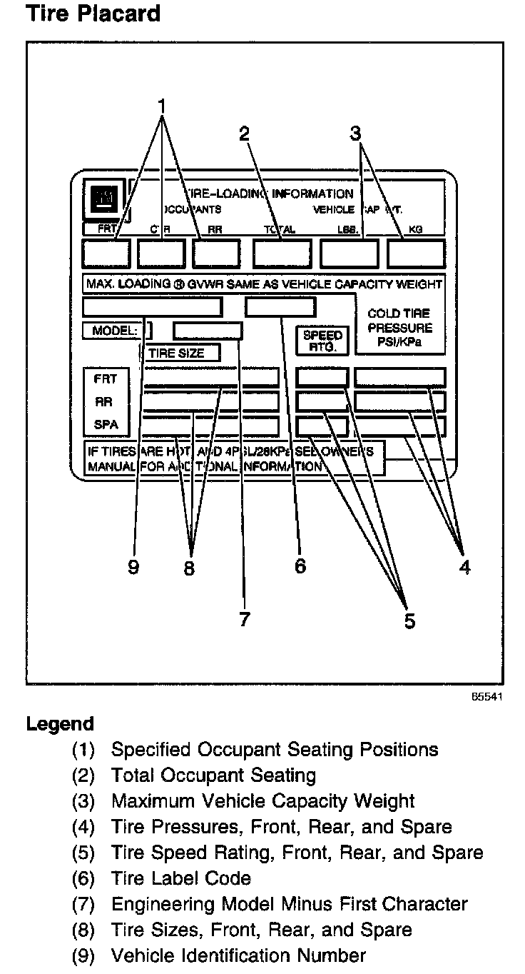 Tire Placard: