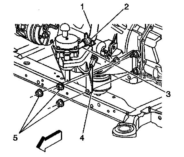 4. Remove the 3 nuts (5) securing the AIR pump bracket to the transmission mount.