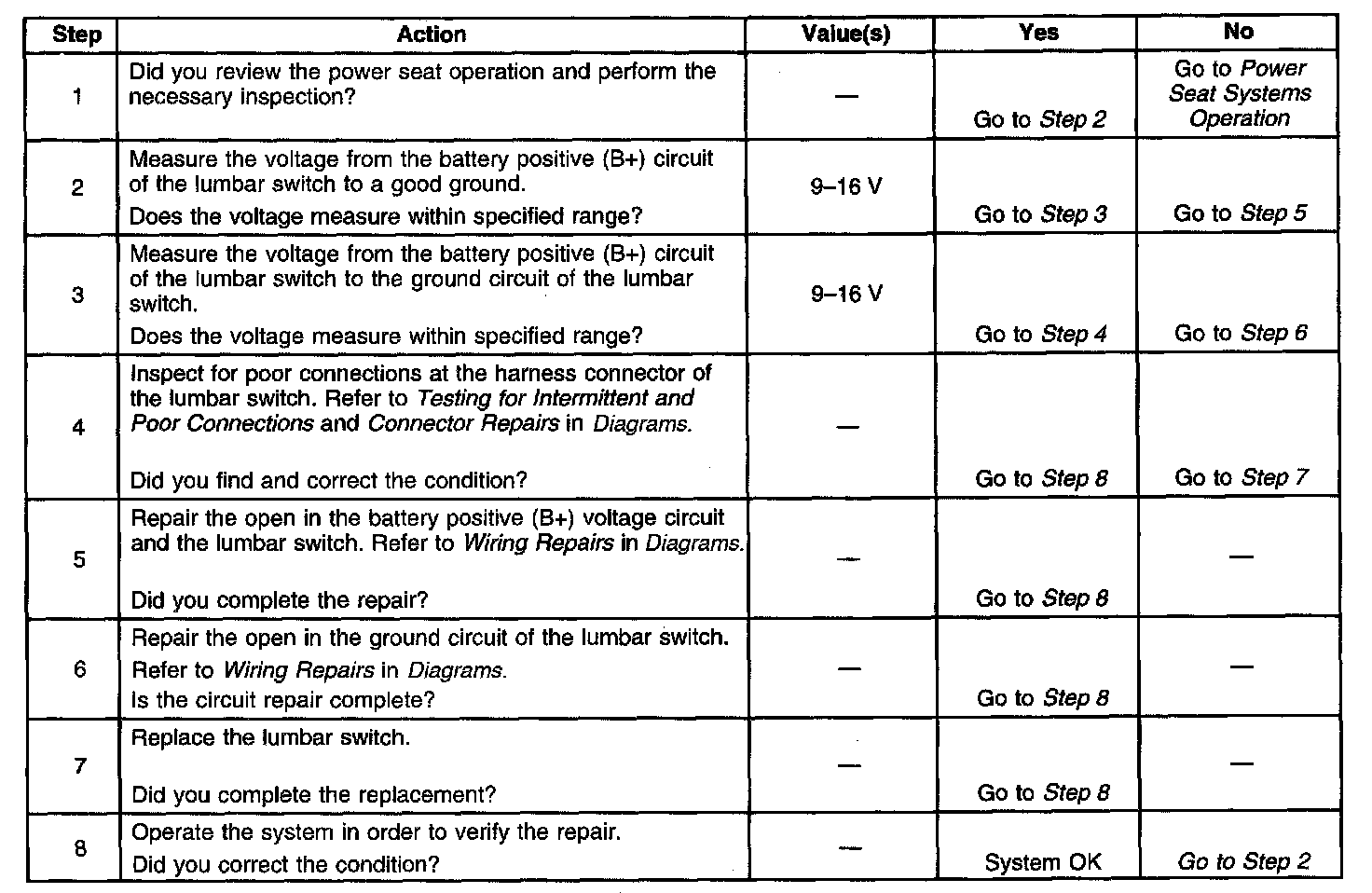 Lumbar Support Inoperative Without RPO A45
