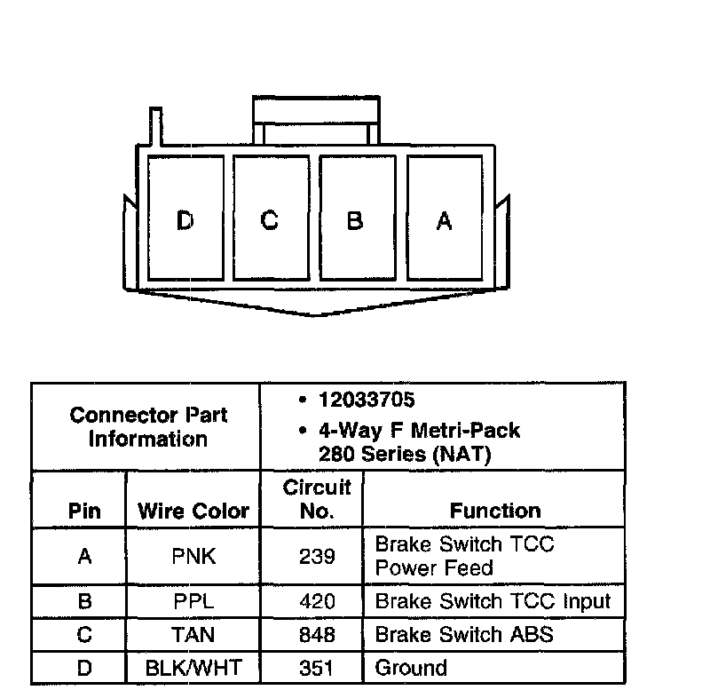 Stoplamp (ABS/TCC Brake Switch) Connector, Wiring Harness Side
